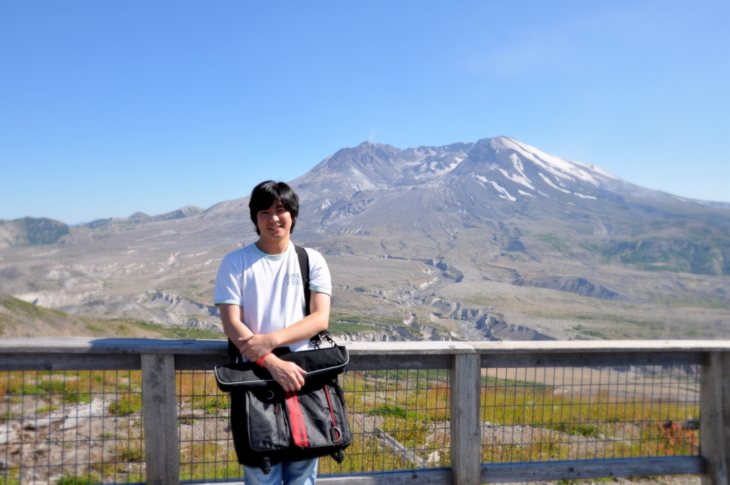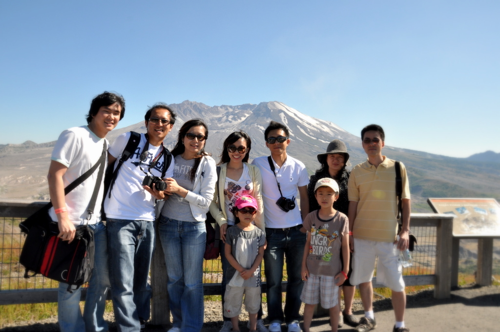八月二十日,星期六。幫同事拍完了婚紗照後,我們就跟其他人一起衝上了華盛頓州著名的活火山:聖海倫斯火山。這座火山在三十年前才剛爆發,如今可以從山上的約翰斯頓山脊近距離觀看火山。在那兒還可以觀賞一些有關火山的短片。不過在這夏天上火山還真的有夠“火”。在這裡經歷了超過一百華氏的溫度,真的少有哦,算是離開檳城後的第一次吧,哈哈。:P