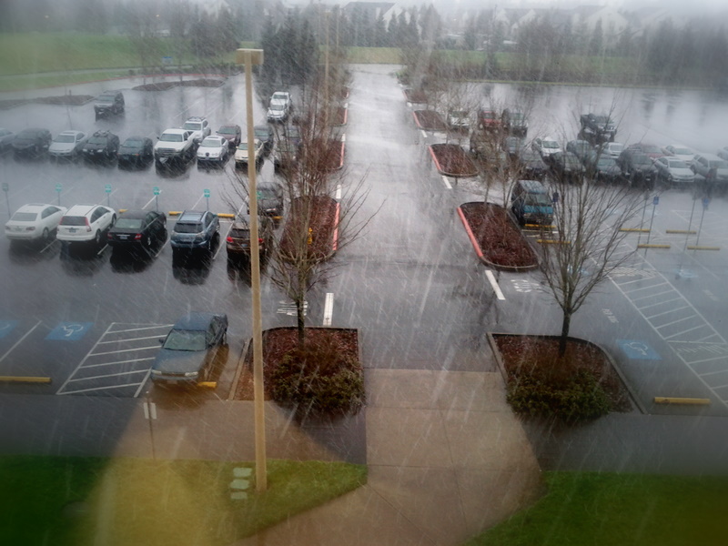 Oh no, that’s not rain ONLY, that’s snow! Well, the snows get melted once they reached the ground. The temperature today is around 34F. Not suitable for snowing I guessed. :/ Snows, you’re coming late this season. >.<